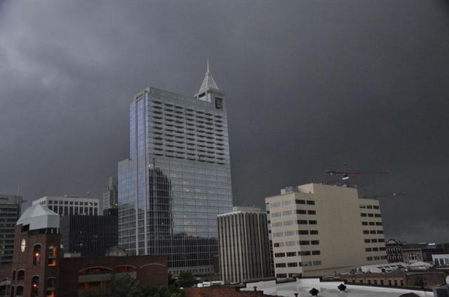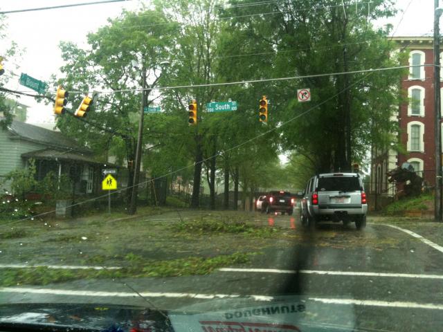 4. Kang and Milkface slept through it, I was working in an old theater in Durham, about 30 minutes north of Raleigh. My first indication anything was amiss was when water started coming down the aisle. Given that we weren’t on a boat I didn’t think much of it, but when water started seeping in through the ceiling I began to get annoyed. Eventually, Kang called and told me what happened. Everyone I’ve talked to is OK, but my friend Jon’s house is pretty close to the impact zone and he won’t have power for a few days. We’re pretty lucky.