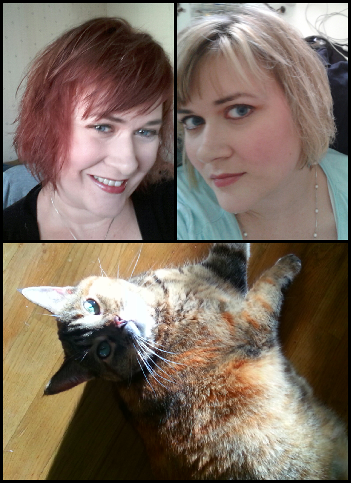 Here she is, the face behind the name. I recently changed my hair from blonde to red and I like it much better. The bottom picture is of my sweet little cat, Cinnamon. I had just brought her home from the vet a few minutes earlier. Despite the fact that she just had several teeth pulled, she was so happy to be home she was rolling and purring like crazy. She would walk a few steps and then flop and roll and purr. Maybe it was the drugs they gave her but I’d never seen her happier. Here she is basking in the sun.